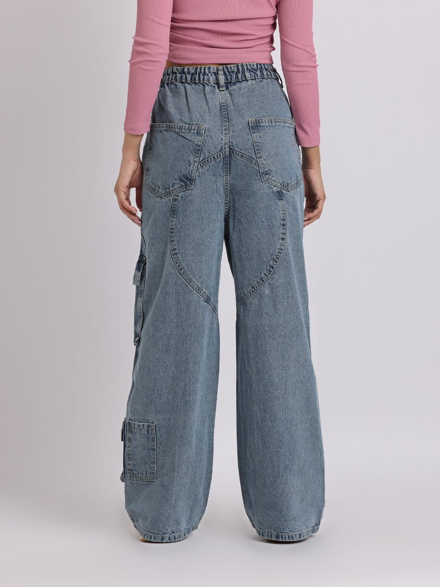 - Fit: Relaxed wide-leg cargo jeans with a modern streetwear silhouette