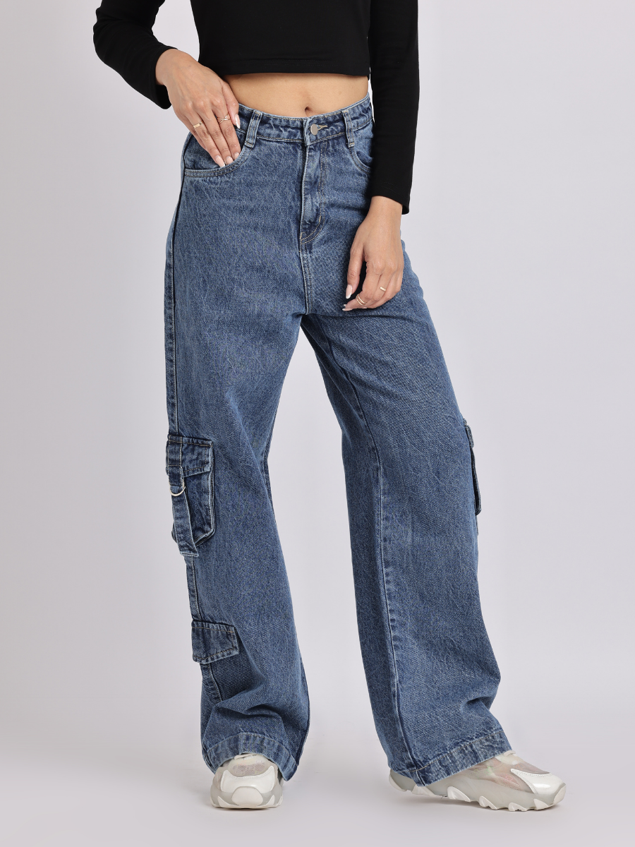 High-Waist Cargo Wide-Leg Jeans
