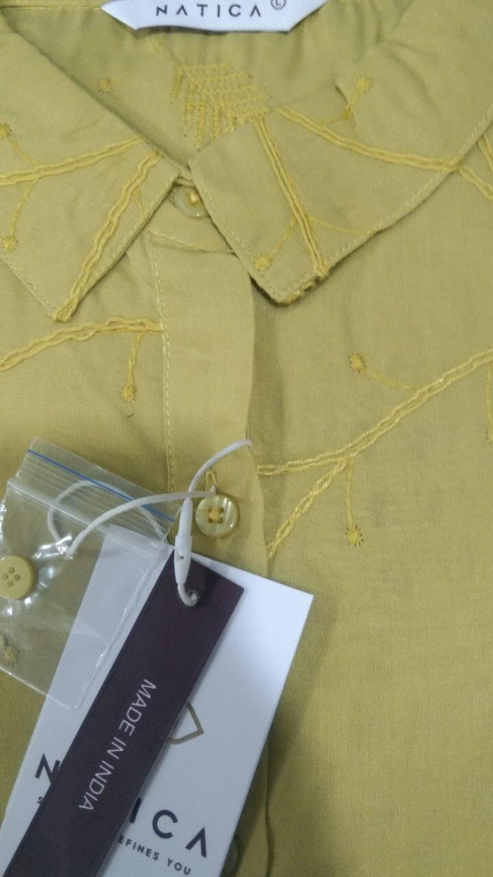 •       Every day style with this cheerful yellow shirt, crafted in soft cotton with delicate tone-on-tone embroidery and cutwork details that add a playful, artisanal touch.